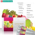 Cactus, Panax ginseng, Maltodextrin, Lemon, Cherry, Yellow Peach, Grape, Blueberry, Rose, Cactus Fruit, Seaweed, Silica, Stevia