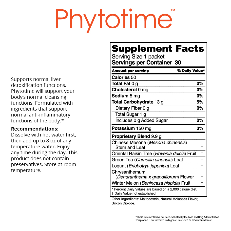 Yes, but Phytotime is so much more! There is recent research supporting the benefits of each of its superfood ingredients: Chinese mesona, Oriental raisin tree, green tea, loquat leaf, chrysanthemum flower and winter melon. This synergistic blend helps support normal detoxification, a healthy liver, normal anti-inflammatory functions, cognitive functions, and healthy digestion.*