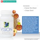 Vision is formulated with grape seeds which contain OPCs or oligomeric proanthocyanidins, and cassia tora seeds which contain bioflavonoids that have been researched extensively for their benefits to support and maintain eye health. OPCs and flavonoids are particularly important in supporting the integrity of the retina and cornea. The tiny cells in your eyes are bombarded by thousands of free radicals every day. While many foods we eat contain small amounts of flavonoids, they are not as common as they should be in most Western diets. Therefore, consuming botanical ingredients containing bioflavonoids like cassia tora seeds and grape seeds can offer an extra measure of antioxidant support for eye health.*