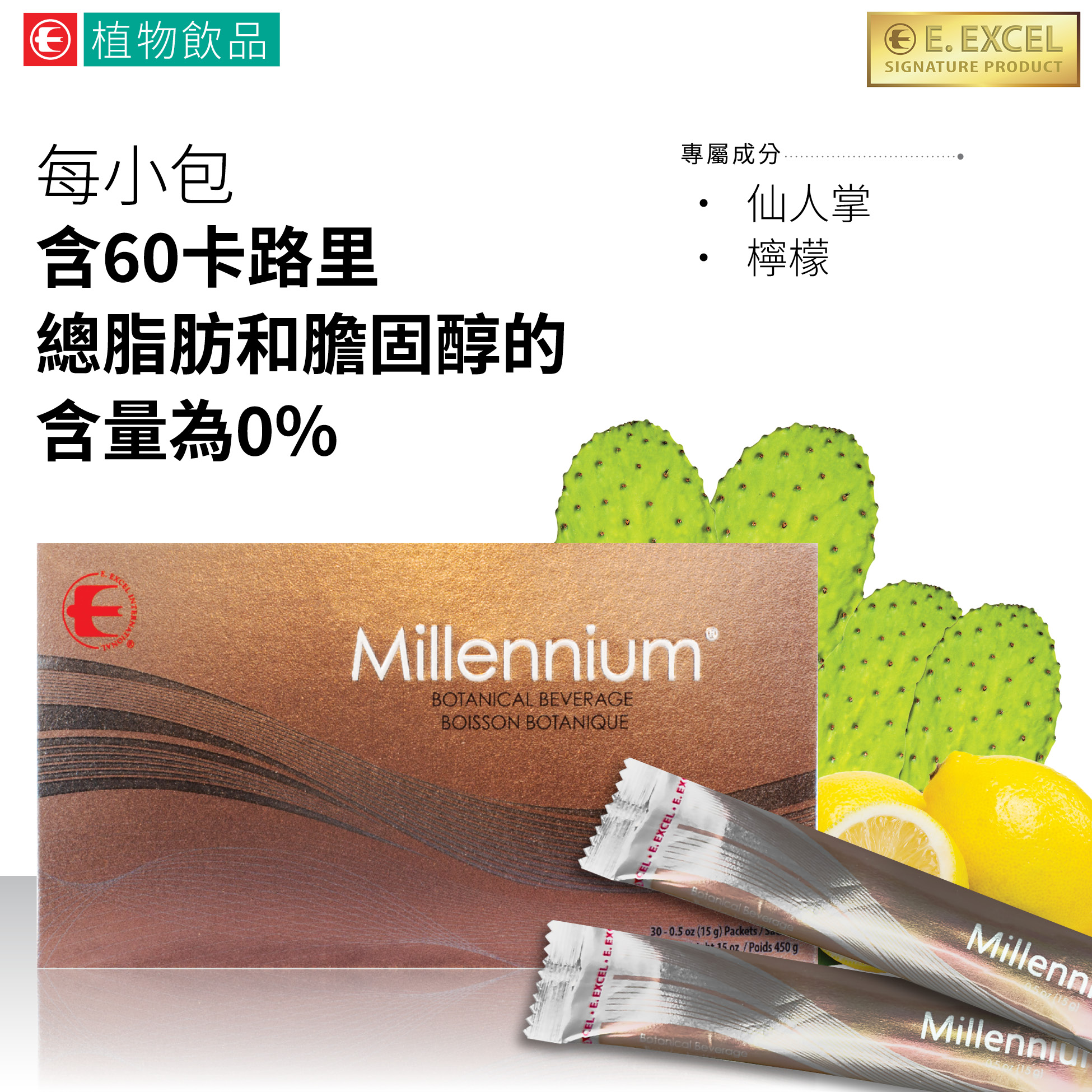 「千禧泉粉劑」是丞燕的一款標誌性產品,該產品是在丞燕獲獎產品「千禧泉」的配方基礎上研發而成。該產品是用跟「千禧泉」和「歡慶」中同樣的珍貴仙人掌製成,但不含蜂蜜或蜂王漿,所以它是各位低糖飲食需求者和蜜蜂製品過敏者的理想選擇。您只要將1包「千禧泉粉劑」與1杯水混合即可飲用。您可在一天中的任何時間享用!