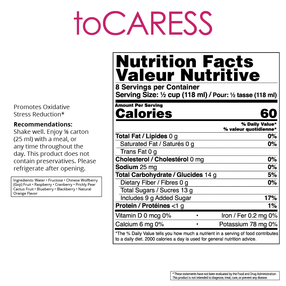 「趣感」是一款美味的飲品,它包含的完整性食品成分有枸杞、覆盆莓、蔓越莓、仙人掌果實、藍莓和黑莓。您的肌膚將受益於這些補水的成分,進而自內而外地展現您最好的狀態。